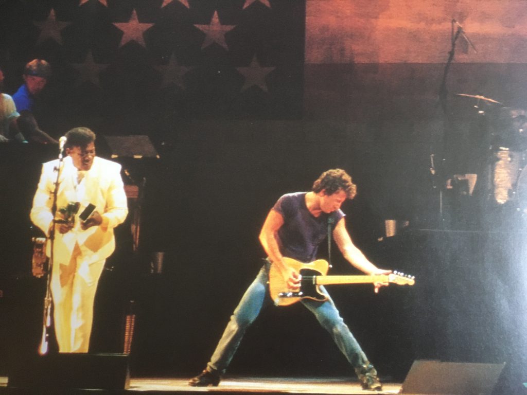 Bruce Springsteen & Clarence Clemons live tijdens een concert in de jaren 80.
